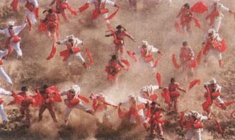 释义 | 安塞腰鼓 陕西省安塞腰鼓是一种非常独特的民间大型舞蹈艺术形式,具有2000年以上的历史。 安塞腰鼓由来已久,本是古代军旅以增军中士气及传递情报所用。频密的击鼓声,强悍的步伐,变幻的阵势,雄壮的呐喊,尽现男子阳刚之美,在国际上极负盛名。 击鼓转身是安塞腰鼓表演的关键。在舞蹈中凡做蹲、踢动作必有转身,转身时必须要猛,特别是做腾空跳跃落地蹲,边转身、边起步的一套动作组合时,必须在固定的节拍里,运用迅速地猛劲才能完成动作的变化与连接。 安塞腰鼓分文鼓与武鼓两种,文鼓以扭为主,重扭轻打;武鼓以打为主,重打轻扭。安塞腰鼓快放快收,变化神速,自然大方,欢快流畅,刚柔并济,屈伸自如,在发展演变过程中将舞蹈、武术、体操、打击乐、吹奏乐、民歌等融为一体,使自身从内容到形式更加丰富,更具观赏性、娱乐性。 安塞腰鼓多采用集体表演形式,鼓手少则数十人,多时可达百余人。在表演上强调整体效果,要求动作的整齐统一和队形变化的规范性,主要通过鼓手们豪迈粗犷的舞姿和刚劲有力的击鼓技巧,充分展现生息在黄土高原上的男子汉们的阳刚之美。 安塞腰鼓除以舞者自身击打的鼓点为主要伴奏外,也有以民间鼓吹乐队伴奏的,乐器有鼓、镲、锣等。 陕西延安,为庆祝中国传统节日元宵节,百姓表演起安塞腰鼓。 |