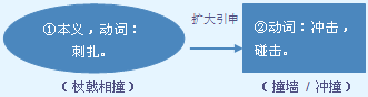❶运动着的人或物体跟别的人或物体猛然碰上。作带宾、带补谓语。 汽车~着人了|~了一个大包|~伤了|~死了|~成残废了|一头~在墙上|一个大汉猛的从后面~了过来|马路上~倒了一个人。 ❷碰见。作带宾、带补谓语。 我在路上~着我多年不见的老同学|我在公园里~着他们俩。 ❸试探;碰。可重叠。作带宾、带补谓语。 这次我可~着好机会了|~~运气再说|~了一下运气|进京学习的好机会叫他给~上了。 【近】 ❶碰 击 ❷遇 ❸碰 试 【词语】 撞车 撞击 撞见 撞骗