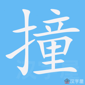 字源解说 撞,篆文 = (手)+ (童,瞎刺眼睛),造字本义:刺扎。楷书 将篆文的 写成 。 附 文言版《説文解字》:撞,卂擣也。从手童聲。 附 白话版《说文解字》:撞,迅速捣钻。字形采用“手”作边旁,“童”作声旁。 引申线索