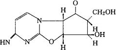 C9H11N3O4=225.20 CAS-31698-14-3 (2R,3R,3aS,9aR)-2,3,3a,9a-四氢-3-羟基-6-亚氨基-6H-呋喃并[2′,3′,4,5]-噁唑并[3,2-α]嘧啶-2-甲醇。 (2R,3R,3aS,9aR)-2,3,3a,9a-Tetrahydro-3-hydroxy-6-imino-6H-furo[]2′,3′,4,5]-oxazolo]]3,2-a]pyrimidine-2-methanol. 2,2′-脱氢-1-β-D-阿拉伯呋喃糖基胞嘧啶盐。 2,2′-Dehydro-1-β-D-arabinofuranosyleytosine. 抗肿瘤药。 环胞苷,环胞啶,盐酸环胞苷。 Ancitabine,Cyclocytidine,Cyclocytidine Hydrochloride. INN,USAN,MI.