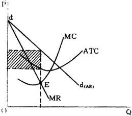 亦称纯粹垄断(pure monopoly),传统微观经济学关于市场类型的划分之一,指的是市场上某种商品的供给量完全由一家厂商所控制亦即只有一个卖者的情况。 在垄断市场上,厂商可以完全控制市场价格,形成独占。垄断厂商所面对的需求曲线也就是对一种产品的市场需求曲线,故呈负斜率形状。 完全垄断与完全竞争一样,均属于市场类型的极端情况,在现实中大量、普遍存在的是介于二者之间的市场类型。 在垄断市场上,利润最大化条件也是边际收益等于边际成本,如下图所示。 图中MC与ATC分别为边际成本和平均成本曲线,dd为需求曲线,MR为边际收益曲线,E为均衡点。需要注意,由于垄断市场上厂商的边际收益低于平均收益亦即价格,故这时的最大利润均衡与完全竞争相比,通常具有更高的价格水平和更低的产量水平。 这意味著垄断导致资源配置的低效率。进一步说,竞争的缺乏会导致比完全竞争条件下更高的成本水平。