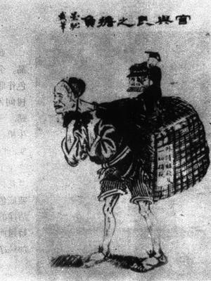 释义 | 官与民之担负 【作品赏析】: 此画见于1910年的上海《神州五日画报》。 这幅漫画描绘脚穿草鞋、汗流满面、骨瘦如柴的穷苦老百姓背著一个大包袱,上写“外债赔款及一切捐税”的字样;包袱上面还坐著一个双手紧抱“责任内阁”的清朝官员。作品告诉人们:清朝官员只顾抱著“责任内阁”不放,而实际上清朝统治者连同“外债赔款及一切捐税”的沉重负担,都是压在穷苦人民的身上,反映了清朝末年由于清王朝的腐朽反动和帝国主义的侵略,使人民遭受残酷的经济剥削和政治压迫。从作品可以看出作者对清朝统治者和帝国主义列强的痛恨及对受苦受难的民众的深切同情。 。【作者介绍】: 马星驰(1888-?),山东人。 早年发表漫画和时事风俗画于《神州五日画报》上,同时他也是该报的主编。民国初年在上海《真相画报》上发表过不少漫画。以后则主要为上海《新闻报》副刊“快活林”画漫画,每天发表一幅。尤其值得注意的是,他在“五四”运动前后创作了不少揭露帝国主义侵略和封建军阀罪行的作品,如《玩弄于股掌之上》、《此所谓人民代表》、《民气一致之效果》等。 他的漫画通俗易懂,并常常利用汉字的构成特点以“拆字式”的方法来说明问题,表达作品主题。 。