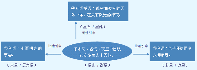 释义 | ![]() ❶夜晚天空中闪烁发光的天体。常重叠。 a.作主语。 满天的~~眨着眼睛|月明~稀|~~缀满了天空。 b.作定语,要带“的”。 ~的光亮闪烁不定。|今晚的夜空是~的世界。 c.作宾语。 妹妹喜欢那一颗最亮的~|天上只有几颗~~|满地的野花像~~,还眨呀眨的。 ❷天文学上指宇宙间能发射光或反射光的天体。常用作语素构成合成词。 恒~|行~|彗~|卫~。 ❸细碎或细小的东西。常儿化。多用于口语。可重叠。常带上定语作句子成分。 a.作主语。 火~儿溅在身上。 b.作宾语。 篝火不断迸出小火~儿。 【词语】 星辰 星斗 星河 星火 星际 星空 星期 星球 星散 星体 星系 星象 星宿 星夜 星移斗转 星云 星座 字源解说 “晶”是“星”的本字。晶,甲骨文 ![]() ![]() ![]() ![]() ![]() ![]() ![]() ![]() ![]() ![]() ![]() ![]() ![]() ![]() ![]() ![]() ![]() ![]() ![]() ![]() ![]() ![]() ![]() ![]() 附 文言版《説文解字》:星,万物之精,上为列星。从晶,生聲。一曰象形,从口,古口復注中,故与日同。曐,古文星。星,曐或省。 附 白话版《说文解字》:星,宇宙万物的精华,字形上部是星群呈列的样子。字形采用“晶”作边旁,“生”作声旁。有一种说法认为,“星”是象形字,采用“口”(注:许慎此处所说的“口”其实是指“圆圈”0)作“星”的形象;古文写法的“星”又在“口”(圆圈0)中加一点指事符号,导致“星”的字形与“日”相混同。曐,是古文写法的“星”字。星,是“曐”的异体字,省略了两个“日”。 引申线索 【字族索引】 星 生 【同音字】 xīng |