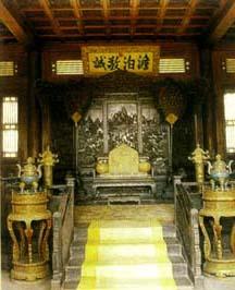 释义 | 宫殿区 避暑山庄宫殿区的建筑集中于山庄南端,是清代皇帝处理政务和居住的地方。总面积为4万平方米,由西向东依次为正宫、松鹤斋、万壑松风和东宫。这些建筑的布局都是对称、严整、封闭的宫廷体制。但为了突出“山庄”这一主题思想,建筑风格与历代帝王的苑宥迥然不同,它既不用琉璃瓦、大理石装潢,也不彩绘粉饰,而是采用朴素简洁的北方民居形式,青砖素瓦,力求自然,古朴典雅。在艺术处理上,利用建筑物的布局、形体组合和空间对比,使之错落有致,疏朗开阔,避免了传统民居呆板单调的气氛。宫殿区的著名景点有:丽正门、烟波致爽殿、云山胜地楼、四知书屋、万壑松风殿、松壑斋等。 丽正门 是避暑山庄的正门,乾隆十九年(1754)建造,是乾隆36景之第一景。三间重台城门,单层瓦脊,歇山卷棚式顶。门前一对鹦鹉石雕刻的石狮,憨态可掬,两侧各立一块下马碑,用汉、蒙、满、藏四种文字刻著“官员人等在此下马”的字样。迎面是一道长约30米的红照壁,高大厚实。丽正门3字用汉、蒙、满、藏和维吾尔五种文字刻匾。“丽正”二字取《易经》“日月丽于天”的意思,既有皇恩浩荡,普照天下之意,也有国家昌盛,各民族团结之寓。 烟波致爽殿 是皇帝的寝宫的主体建筑,康熙称这里“四周秀丽,十里平湖致有爽气”,因而赐名“烟波致爽”,列为36景之首。烟波致爽殿面阔7间,前廊后厦,东、西两侧有半封闭式的复廊与前殿衔接,各有一角门,通东、西跨院,是东西两宫皇后的居室。东面暗间称东暖阁,是皇帝读书、批奏折、用膳之处,西面暗间称西暖阁,为寝宫。游客会发现西暖阁的西山墙上有一扇不起眼的小门,内有夹墙,直通卧床罩背后。据说慈禧多次从夹墙中潜到咸丰床后,窃听他与大臣们议论机密大事。而慈禧与奕訢密谋辛酉政变,也是在西跨院中策划的 云山胜地楼 此楼在烟波致爽殿后,是康熙36景之第八景。楼两层,面阔5间。此楼最别致的地方是不设楼梯,而是沿楼外假山磴道盘旋而上至第二层。因其踞岗背湖,登上二楼,居高临下,俯瞰湖光山色,迷茫苍翠,夕霭朝岚,难以名状。楼上的西间原是一小佛堂,名莲花室,供奉玉观音一尊,楼下西间有小戏台。当年乾隆常常在中秋或重阳来此登临赏月,顾曲听戏。云山胜地是正宫最后一层,转过此楼,出正宫后门——岫云门,即到达湖区的西南岸。 四知书屋 四知书屋并非皇帝的书房而是皇帝在上朝、退朝途中休息或是因为场合不同而更换衣服的地方。为表示特别恩宠,皇帝也不时在这里破格接见来访者如乾隆皇帝曾先后在此接见过班禅六世、蒙古王爷等。“四知”出于《易经》的“君子知微、知彰、知柔、知刚,万物之望”。 万壑松风殿 在正宫东北角,踞岗俯湖,是一座有江南园林风格的院落,是正宫向湖区过渡的建筑。这里峡谷风来,松涛阵阵,所以康熙命名为“万壑松风”,是其36景之第六景。万壑松风殿用半封闭回廊连通环抱,不设轴线,各个殿堂参差错落,有丰富的层次感和鲜明的空间变化。主殿万壑松风坐南朝北这是山庄宫殿中惟一一座打破坐北朝南体制的正殿。 松鹤斋 在万壑松风南面,是乾隆十四年(1749)仿照正宫的形制为皇太后修建的。取名松鹤,寓有松鹤延年、长生不老的意思,表达了乾隆对母亲的一片孝心。松鹤斋7进院落,正殿是乾隆亲题匾额的松鹤斋(后改为含辉堂),其后是皇太后的寝宫乐寿堂(后改名悦性居)乐寿堂后是15间照房,比正宫的19间少4间。照房后是面阔7间的绥成殿。乾隆五十七年,乾隆亲自把它改为继德堂,供太子颙琰(嘉庆皇帝)居住,“继德”有继承祖宗遗德之意。道光十二年(1832),道光皇帝下旨将清朝各代帝王的画像供奉于继德堂内。继德堂后是仿照云山胜地楼建的畅远楼,形制基本一样,规模稍小。 康熙三十六景 烟波致爽、芝径云堤 无暑清凉、延薰山馆 水芳岩秀、万壑松风 松鹤清樾、云山胜地 四面云山、北枕双峰 西岭晨霞、锤峰落照 南山积雪、梨花伴月 曲水荷香、风泉清听 濠濮间想、天宇咸畅 暖流暄波、泉源石壁 青枫绿屿、莺啭乔木 香远益清、金莲映日 远近泉声、云帆月舫 芳渚临流、云容水态 澄泉绕石、澄波叠翠 石矶观鱼、镜水云岑 双湖夹镜、长虹饮练 甫田丛樾、水流云在 万壑松风对联 纪晓岚 八十君王,处处十八公,道旁介寿; 九重天子,平平重九节,塞上称觞。 避暑山庄住宿点 绮望楼 位于庄之内,环境幽静 (电话:2024385) 蒙古包度假村 位于山庄内的万树园,附近有草原、森林和湖泊,一派内蒙古草原风光 (电话:2162710) 乾隆三十六景 丽正门、勤政殿 松鹤斋、如意湖 青雀舫、绮望楼 驯鹿坡、水心榭 颐志堂、畅远台 静好堂、冷香亭 采菱渡、观莲所 清晖亭、般若相 沧浪屿、一片云 萍香泮、万树园 试马埭、嘉树轩 乐成阁、宿云檐 澄观斋、翠云岩 罨画窗、凌太虚 千尺雪、宁静斋 玉琴轩、临芳墅 知鱼矶、涌翠岩 素尚斋、永恬居 |