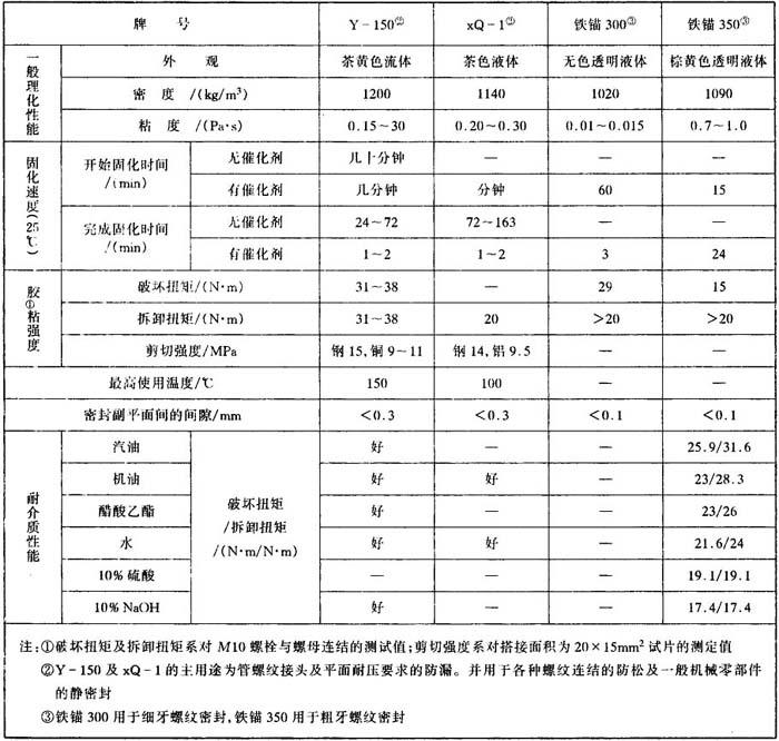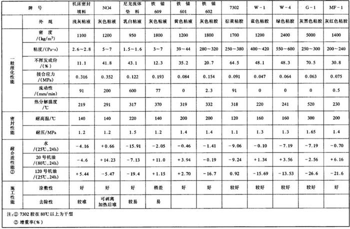 释义 | 密封胶 密封胶是一种高分子材料涂敷于密封副接合面后,有一定粘度并在外力作用下可自由流动,填于接合面微观凹凸不平处,因而起到密封作用。密封胶品种多且广泛应用于静密封装置的结合面。如:螺塞、法兰、管接头和箱体平面等的结合面。 特点: ·密封性能好,承载能力大,能耐一定的振动和冲击力。 ·密封面结构简单,封口形状不受限制。 ·不受密封副偶件的材料限制,可密封各种材质的密封副偶件。 ·耐腐蚀、绝缘性能好。 ·施工方便,操作简单,易实现机械化。 ·成本低,损耗少。 ·涂敷前,必须将密封面清洗干净,并彻底除油。 ·经过长时期运作,密封胶会老化。 ·普通型密封胶的使用温度≤150℃。 (1)液态密封胶 液态密封胶,又称液态垫圈。在常温下具有流动性的粘稠性液体。涂敷装配后,在两结合面间,由于紧固力的作用,形成不同性状的密封薄膜。液态密封胶已广泛应用于压缩机、机床、泵、阀、管道、电机等产品的密封。它除了用作平面密封外,还可替代白铅油、麻丝等,用于管道的螺纹密封。 A.分类 液态密封胶,可分为橡胶型和树脂型、有溶剂型和无溶剂型。若按使用工况分,可分为耐热型和耐寒型、耐压型和耐油型,耐水型和耐化学药品型等。若按涂敷、装配后的成膜性状,又可分为干性、不干性和半干性型;干态可剥离型和干态不可剥离型(附著型)等。 (A)干态可剥离型 此类密封胶,属溶剂型密封胶。涂敷、装配后,由于溶剂迅速挥发,形成柔软的弹性薄膜。此薄膜的厚度,由密封间隙大小而确定。且耐振动、附著严密,密封可靠,易于拆卸、剥离。 (B)干态不可剥离型 此类密封胶,系溶剂型密封胶。涂敷、装配后,溶剂迅速挥发。构成的密封薄膜牢固地附著于密封间隙。具有极好的耐压性和密封性。但是耐振动性和耐冲击性较差,拆卸性能也较差。 (C)半干型 半干型密封胶,系溶剂、橡胶型。涂敷、装配后,溶剂迅速挥发,构成密封“垫圈”。该密封“垫圈”可以保持长期不固化,始终保持粘弹性。具有耐压、柔软、方便拆卸的性能。 (D)不干型 不干型密封胶,属无溶剂、树脂型。涂敷、装配后,长期保持不硬,具有较高的粘弹性能。耐冲击、振动性能好。密封性能尚佳。不干型密封胶,也有部份溶剂型产品,装配和拆卸后残胶易于清除。 B.液态密封胶的性能及使用 由于液态密封胶是粘稠性液体,在紧固力作用下能将结合面上的凹“坑”全部充满、填平,且胶体对结合面具有较强的粘附力,尽管在紧固力作用下,胶体构成极薄的密封膜,但它仍能处处贴合于被密封面的间隙中。由于密封膜极薄,表面吸附力大,根据单分子理论,膜越薄,回复性越大。因此,当密封部位的内压上升时,若间隙小,则密封膜发生弹性变形而位移。若间隙大,则密封膜发生粘性流动。因而,只要保证有适当的间隙值,就能保证有良好的密封性能。 使用液态密封胶时,操作程序如下: 预处理 去除密封副结合面上的油污、尘土、锈斑。若单独使用时,则应控制密封副偶件结合面之间的间隙值≤0.1mm。 涂敷 可采用手工或机械化方式。涂敷厚度,应视密封面的加工精度、平整度及间隙值大小而定。一般,可控制在每面为0.06~0.1mm之间。 晾干 溶剂型密封胶,涂敷后应晾干一定时间后再装配。晾干时间的长短,应视涂敷厚度及所含溶剂的种类而定。通常晾干时间为3~7min。 紧固方法 紧固方法与垫片密封的方法相同。但应确保在紧固过程和紧固后不发生密封面位移。 我国于1972年起,已开始生产密封胶,产品种类较多,基本上能满足用户的使用要求。但产品的性能和国外同类产品相比,尚有一定差距。现将部份国产密封胶的性能列于表26.6-3。 表26.6-3 国产液态密封胶的选用 (2)厌氧胶 厌氧胶又称螺纹密封紧固胶。它在涂敷、装配后,必须在隔绝空气的情况下才能固化起密封作用。厌氧胶的浸润性能好,能使密封部位的缝隙充满胶液。固化后密封性能极佳。一般,厌氧胶在常温和隔绝空气的条件下,会自行固化。为缩短固化时间,可引入催化剂来缩短固化过程。例如:Y-150厌氧胶,在25℃室温条件下自行固化的时间,约需1~3天。若引入催化(固化)剂后,则约需1~2h即可固化。且固化速度与引入的固化剂的量有关。 厌氧胶,现已广泛使用于螺纹的联接和防松,液压系统管路系统的螺纹联接、防松和密封。 厌氧胶使用的容许密封间隙值,较其它液态密封胶稍大,但一般不大于0.3mm。为保证密封性能和考虑到有利于防止空气进入密封间隙,影响胶液的固化速度,故其间隙值还是希望控制在0.1mm以下。 基于厌氧胶固化后,属干性不可拆型。因此,密封偶件拆卸极为困难。如欲拆卸密封偶件,必须将密封偶件加热至200℃以上,趁热拆卸。 厌氧胶的性能,因品牌不同而异。表26.6-4所示,为四种国产厌氧胶的性能。 表26.6-4 国产厌氧胶的性能 (3)选用 由于密封胶的产品品牌越来越多,使用前应根据密封部位的使用条件,密封副偶件的材料,密封副结合面的状态,被密封介质的种类和性能及固化条件等综合考虑进行选择。 ·关于使用条件:包括受力状态、工作温度、环境以及密封副偶件是否需要可拆性等。 ·关于密封副偶件的材料:一般对非金属件,可选用低强度的密封胶。对于金属件,则应选用高强度的密封胶。 ·关于密封副偶件的状态:它包括密封副偶件在装配状态下的间隙大小及形态、表面粗糙度,以及是否有氧