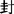 fēng 9画 寸部 左右 会意字 FFFY 【笔顺】 封 【释义】 ❶ (动)密闭;严密地盖住:~闭|~口。 ❷ (动)界限;限制:~疆|故步自~。 ❸ (量)用于封起来的东西:一~信。 ❹ (~儿)(名)用来封闭或包装东西的纸袋或外皮:信~|~套|~面。 ❺ (动)古时帝王把土地或官爵赏赐给下面的人:分~|~地|~官。 ❻ (名)〈书〉国界;疆界:~界|~疆。 ❼ (Fēng)(名)姓。 【封闭】fēngbì(动) ❶ 严密关住或盖住,使不得打开或通行:~门户。 ❷ 查封:~赌场|~非法经营的商店。 [近义]封锁 关闭 紧闭 [反义]敞开 开放 突围 [例句]由于连降大雪,所以临时封闭了高速公路。 【封锁】fēngsuǒ(动) ❶ 用强制力量使与外界隔绝:经济~|~消息。 ❷ (采取军事等措施)使不能通行:~线|~边境。 [近义]封闭 关闭 [反义]开放 突围 [例句]联合国大会通过了对这个国家实行经济封锁的决议。 组词:封笔 封底 封河 封侯 封建 封杀 封赏 查封 开封 密封 自封 |