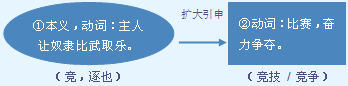 竞争,竞赛。常用于固定词组中或用作语素构成合成词。 百花~妍|鹰击长空,鱼翔浅底,万类霜天~自由|人们~相传颂他的事迹|青年人~相报名参军|~相开放|~争|~选。 【词语】 竞渡 竞技 竞技运动 竞技体操 竞选 竞走
