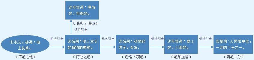 释义 | 毛 1 ★★★ 00717名![]() 动植物皮上生的丝状物;鸟类的羽毛。 a.作主语。 兔子身上的~可以制作衣物。 b.作宾语。 牧民们正在用“电推”给绵羊剪~|用枇杷叶做药引时,要用刀刮掉叶背上的细~。 c.用于固定词组中或用作语素构成合成词。 皮之不存,~将焉附?|~笔|~茸茸|眉~。 ❶粗糙,还没有加工的;引申指做事粗心,不细致。 a.作定语。 ~手~脚。 b.作谓语。 桌面还很~,应当加加工|这人做事太~。 ❷惊慌。常作“发”的宾语、“吓”的补语。 一看见狗向我跑来,心里就有些发~|她早被那家伙吓~了。 口语中指一元钱的十分之一;角。常构成数量词组作定语。 两~钱|油菜三~五分钱一斤。 【近】 〈形〉❶粗 糙 【反】 〈形〉❶滑 【词语】 毛笔 毛玻璃 毛糙 毛豆 毛发 毛纺 毛烘烘 毛孔 毛皮 毛茸茸 毛遂自荐 毛细血管 毛线 毛躁 毛织品 字源解说 毛,金文字形 ![]() ![]() ![]() ![]() ![]() ![]() ![]() 附 文言版《説文解字》:毛,眉髮之屬及獸毛也。象形。凡毛之屬皆从毛。 附 白话版《说文解字》:毛,像眉发之类及兽毛。象形。所有与毛相关的字,都采用“毛”作边旁。 引申线索 ![]() 【字族索引】 乚 毛 【同音字】 máo |