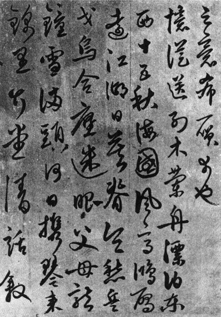 【赏析】: 姚玭所书这幅作品,具有超然飞昇之势、敛约蓄美之态。活泼飞动,笔简形美。字势雄强,别有洞天。笔法遒劲,一气呵成,娴熟沉著而险绝。笔势纵横而不失精妙,时掺以章草法式,使之浑然一体,不露痕迹,最爲难能可贵。 在书法上,所有的艺术手段本身,都可以构成抽象性的联想,而用于联想的物象却是具象的。所以,书法形式美的生成性,通常都是在具象—抽象的一定层次上表现出来的。书法家一旦系统地把握了自己某一层次的形式组合法则,艺术风格便跃然纸上。做爲一种用槪括的艺术语言去表现形式上的抽象而系统上具有的具象性,姚玭基本上找到了自己的艺术途径。在长期的领悟《书谱》、张旭、怀素等等优秀的法帖中,这种创作过程非一朝一夕。它是一种漫长的思想感觉和积澱的过程。要使书法的语言变成一种特殊的符号,特殊的感情,书法的形式系统才能得以不断的完善。这种探索,除了胆识以外,取得成功的秘诀还在植根于自己的传统基础。无疑,姚玭在这方面是成功的。 |