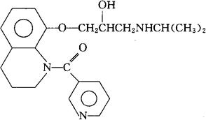 C21H27N3O3=369.46 CAS-76252-06-7 (±)-1,2,3,4-四氢-8-[2-羟-3-(异丙氨基)丙氧]-1-烟酰喹啉。 (±)-1,2,3,4-Tetrahydro-8-[2-hydroxy-3-(isopropylamino)propoxy]-1-nicotinoylquinoline. 1,2,3,4-四氢-8-[2-羟-3-(1-甲基乙基)氨基)丙氧]-1-(3-吡啶基羰基)喹啉。 1,2,3,4-Tetrahydro-8-[2-hydroxy-3-(1-methylethyl)amino]propoxy,-1-(3-pridinylcarbonyl)qunoline. 抗心律失常药,抗高血压药。 尼卡洛卜罗。 Nicainoprol,CAS 924,RU 42924.  |