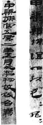 释义 | 居延甲渠候官五凤二年名籍简 【简介】: 书于宣帝五凤二年(公元前56)。简长23cm,简宽1cm。木质。一九七三年出土于居延甲渠候官遗址,现藏甘肃省文物考古研究所。 【赏析】: 该简运笔舒展并富有弹性,起落精到,波挑丰腴。用墨枯润相间,自成节律。结体欹侧有致,有意识地突破著均衡板滞的路子。虽仅寥寥十七字,其章法亦颇耐人寻味。书者爲了节省面积,使字尽作扁形,撇捺极意推引,俱呈分背之势,增加飞举之美。长形结体的篆书之所以向著扁形、并具“八分”势头的隷书方向发展,此当爲重要原因之一。 |