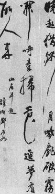 释义 | 山居早起诗轴 【简介】: 淸·邓石如书。纸本。草书。五言绝句一首。凡四行,共二十九字。刊于日本《明淸书道图说》。 【赏析】: 邓石如是以篆、隷书著称的大家,他的行草书虽然影响不及篆隷,但写得仍然很好。用笔豪放而凝重,结体造型丰富,空间意识很强。作品多宗黄庭坚行草书的用笔、结体。行笔稳、笔势缓,自然颤动,行中有留,动中有静。但变化而和谐的程度不如黄。作品在整体对应上,完美也还不 够。拓放的字如“残”、“开”、“花”等,大胆纵笔,却与其它较凝聚的字反差太大,因而显得不够自然。 |