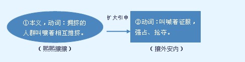 释义 | ![]() 字源解说 襄,既是声旁也是形旁,是“嚷”的省略,表示叫喊、嘟嚷。攘,篆文 ![]() ![]() ![]() ![]() ![]() ![]() 附 文言版《説文解字》:攘,推也。从手,襄聲。 附 白话版《说文解字》:攘,人群相互推挤。字形采用“手”作边旁,采用“襄”作声旁。 引申线索 ![]() 【字族索引】 襄 【同音字】 rǎng |