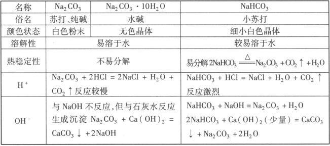 释义 | 工业制法 注意 CO2与NaOH溶液反应产物的判断 CO2+2NaOH=Na2CO3+H2O(CO2不足) CO2+Na2CO3+H2O=2NaHCO3 CO2+NaOH=NaHCO3(CO2过量) 由上述反应原理可判断: ❷ 用NaOH制备NaHCO3,可采用向NaOH溶液中通入过量CO2的方法. 其它酸性氧化物(如SO2)与碱的反应与上面原理非常类似 (3)碳酸钠与碳酸氢钠 注意 (1)Na2CO3与盐酸的反应: ❶ 向盐酸里逐滴加入Na2CO3溶液(开始时酸过量) 2HCl+Na2CO3=2NaCl+CO2H↓(2O ❷ 向Na2CO3溶液里逐滴加入盐酸(开始时酸不足) HCl+Na2CO3=NaCl+NaHCO3(无气泡) HCl+NaHCO3=NaCl+CO2H↓(2O 不同的滴加顺序产生不同的现象,这就是不用其它试剂鉴别Na2CO3溶液和盐酸的原理. (2)向饱和Na2CO3溶液中通入足量CO2会析出NaHCO3晶体.原因:溶解度:Na2CO3>NaHCO3;且有水参加反应;生成的NaHCO3质量大于Na2CO3. (3)Na2CO3与NaHCO3的相互转化: (4)Na2CO3与NaHCO3的鉴别: ❶ 晶体受热:NaHCO3受热产生使澄清石灰水变浑浊的无色无味气体.Na2CO3无此性质 ❷ 加CaCl2溶液:Na2CO3+CaCl2=CaCO32NaCl,NaHCO↓(3无此性质用BaCl2溶液也会产生相同现象. ❸ 加稀盐酸:Na2CO3溶液中加入很稀的盐酸,开始无气体产生,NaHCO3溶液中加入稀盐酸即产生气体 ❹ pH试纸:同浓度,同温度下,Na2CO3的pH>NaHCO3的pH原因:此时 若用酚酞试液,Na2CO3可使酚酞试液变红,而NaHCO3则不能 例 取ag某物质在氧气中完全燃烧,将其产物跟足量的过氧化钠固体完全反应,反应后固体的质量恰好也增加了ag.下列物质中不能满足上述结果的是( ). A.H2 B.CO C.C6H12O6 D.C12H22O11 解析 由于2CO+O2=2CO2,2CO2+2Na2O2=2Na2CO3+O2,两式合并可得关系式:CO+Na2O2=Na2CO3,即agCO在氧气中完全燃烧,将其产物跟足量的过氧化钠固体完全反应,反应后固体的质量恰好增加了ag;同理,2H2+O2=2H2O,2H2O+2Na2O2=4NaOH+O2,两式合并也可得关系式:H2+Na2O2=2NaOH,即agH2在氧气中完全燃烧,将其产物跟足量的过氧化钠固体完全反应,反应后固体的质量也恰好增加了ag.由此推理,凡是满足化学式(H2)x(CO)、的物质ag,在氧气中完全燃烧,将其产物跟足量的过氧化钠固体完全反应,反应后固体的质量恰好也增加了ag 答 D. |