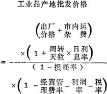 产地批发企业出售工业品的价格。 它是由工业品的出厂价格加商业批发企业的流通费用(商业企业的流通费用包括市内运杂费、资金占用利息,商品损耗、经营管理费)和利润构成,在计算工业品产地批发价格时,一般都将商品流通费用和利润换算成进销差价率,一次算出批发价格。产地批发价格是制订销地批发价格和产地零售价格的基础。同时也是从产地调拨工业品制定调拨价格的计算基价。工业品产地批发价格的变动,会引起流通各个环节价格上的连锁反应。因此,合理制订工业品产地批发价格是一个政策性强、影响面广的工作,必须加强调查研究,认真分析,根据产地产品的产量、质量成本等因素审慎从事,其理论批发价格计算公式是:  简化后的计算公式是:产地批发价格=出厂价格×(1+进销差价率) |