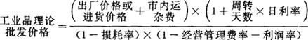 按照工业品批发价格的形成因素计算出来的批发价格。 而批发价格是批发企业供应给零售企业或按规定供应给生产单位用于生产的商品价格。一般由批发企业的购进价格(出厂价格、收购价格或调拨价格)加批发企业的流通费用和利润构成。批发价格处于最初价格(出厂价格或收购价格)之后、最终价格(零售价格)之前,属于中间价格。是制订商业内部调拨价格和零售价格的基础。 计算公式为:  +利息+商品损耗+经营管理费+利润 由于上述工业品批发价格中的各项费用支出计算基础不同,因而在价格工作中还不能直接这样简单相加,要有包括各个不同要求费用支出在内的计算方法与公式。即: