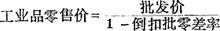 释义 | 工业品零售价格 指零售企业或生产者直接向城乡居民、社会集团供应工业品的价格,它是工业品的最终价格。 工业品零售价格由当地批发价格、市内运杂费、资金占用利息、零售损耗、企业经营管理费、零售工商税或营业税和利润构成。各类日用工业品实际的零售价是以核定的批零差率制订的,计算公式为: 工业品零售价=批发价×(1+核定批零差率) 或: 日用工业品的批零差率是由物价主管部门根据不同地区、不同时期的具体情况而制定的,例如湖南省1991年百货、文化用品的批零差率为19%,五金交电类为17%,其他工业消费品为18%。日用工业品零售价格的高低直接关系到城乡人民生活和零售企业的利润水平。 稳定日用工业品的零售价格是繁荣日用工业品市场的重要保证。 |
