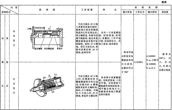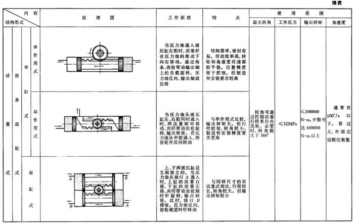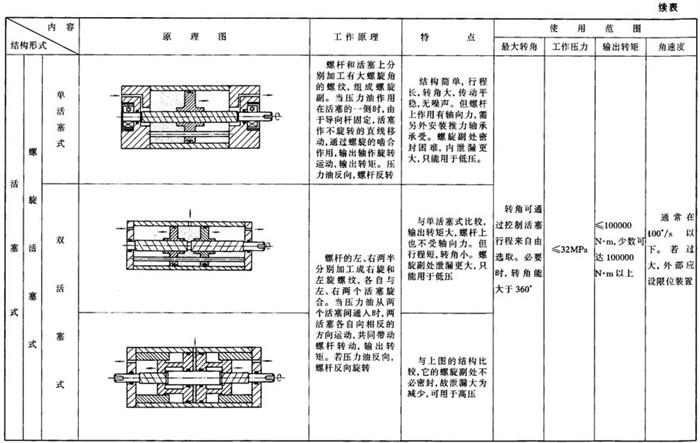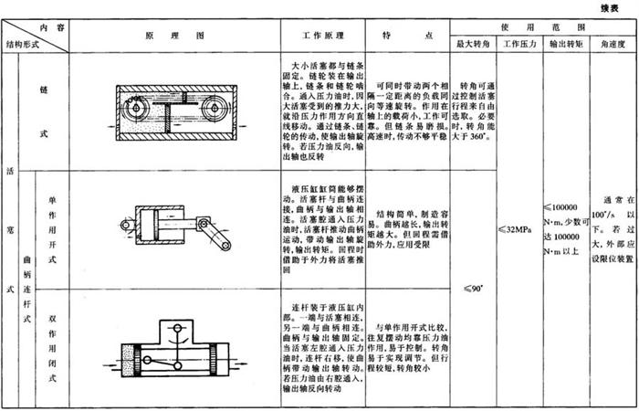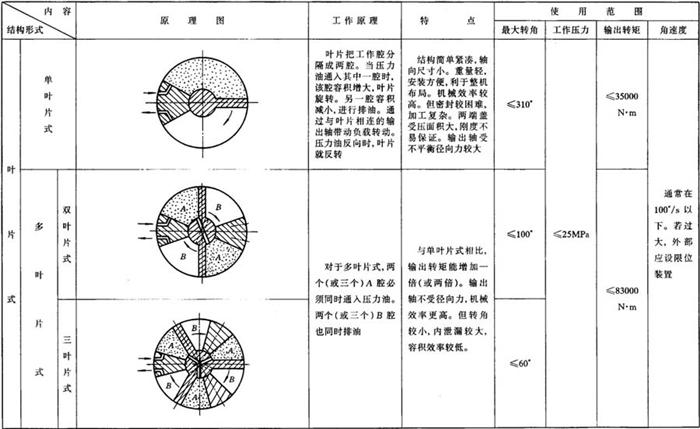 各类摆动液压缸的工作原理、特点和使用范围列于表25.3-1。