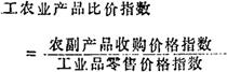 又称工农业商品交换比价指数。 反映不同时期工农业商品交换比价变动趋势和程度的相对数。工农业商品比价指数反映全部工业品价格同全部农产品价格总水平的对比情况及发展趋势,说明不同时期农民将农产品卖给国家,向国家换回工业品数量的增减情况。编制工农业产品比价指数,是为了在工农业产品交换中贯彻等价交换的原则。 它关系到工农业生产的发展,工农业间国民收入的分配,积累和消费间的比例关系,以及城乡人民生活的改善等,是物价政策研究的重大问题。 它可以按单项商品计算比价指数,也可以按各类商品计算比价指数,还可以按全部工农业商品计算综合比价指数。比价指数的计算有正指标和逆指标两种形式。 它还指在同一市场,同一时间农副产品收购价格指数和售给农村的工业品零售价格指数(正指数)之比。其计算公式为:  有时亦用其倒数(逆指数)之比,其计算公式为:  实际工作中,为了研究农产品价格与工业品价格的差距变化情况,通常用前一种方法计算。 |