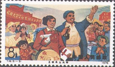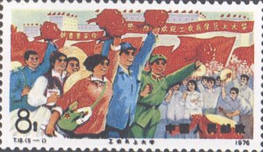 释义 | 工农兵上大学 发行日期:1976年9月6日 齿孔度数: 印刷版别:影写版 票幅:52×31 全张枚数:40(4×10) 设计者:邹建军 印刷:北京邮票厂 (1)8分 满怀豪情上大学 800万枚 (2)8分 革命理论指航向 800万枚 (3)8分 大课堂 800万枚 (4)8分 攀登科学高峰 800万枚 (5)8分 当有社会主义觉悟、有文化的劳动者 800万枚 (1)-(5) 5枚全 |