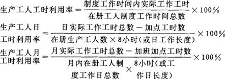 释义 | 工时利用率 指反映企业在册生产工人,把制度工作时间用于生产工作的程度的指标。 它是制度工作时间内的实际工作工时与在册工人制度工作时间总数的比率,可按日、月、季、年进行计算和考核。其计算公式如下: 季、年工时利用率计算方法与月生产工人工时利用率计算方法相同,只是时间长度不同。 |