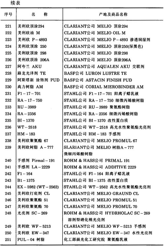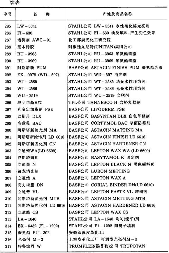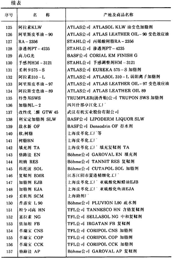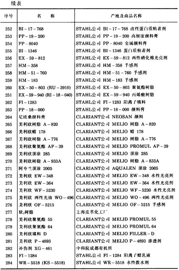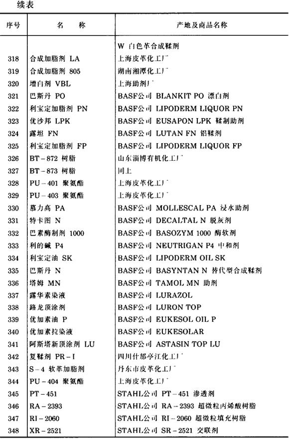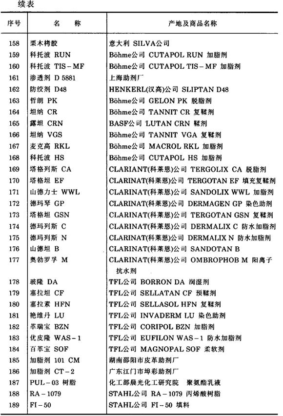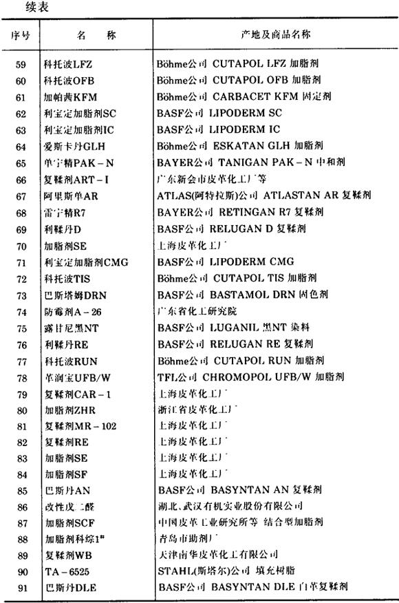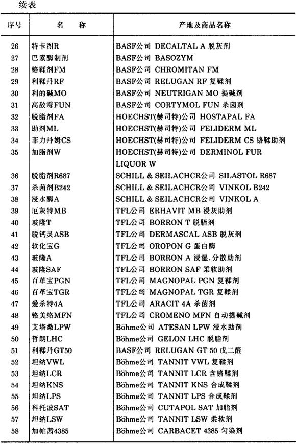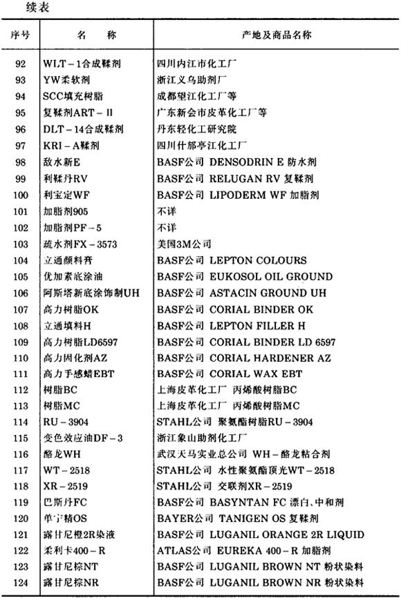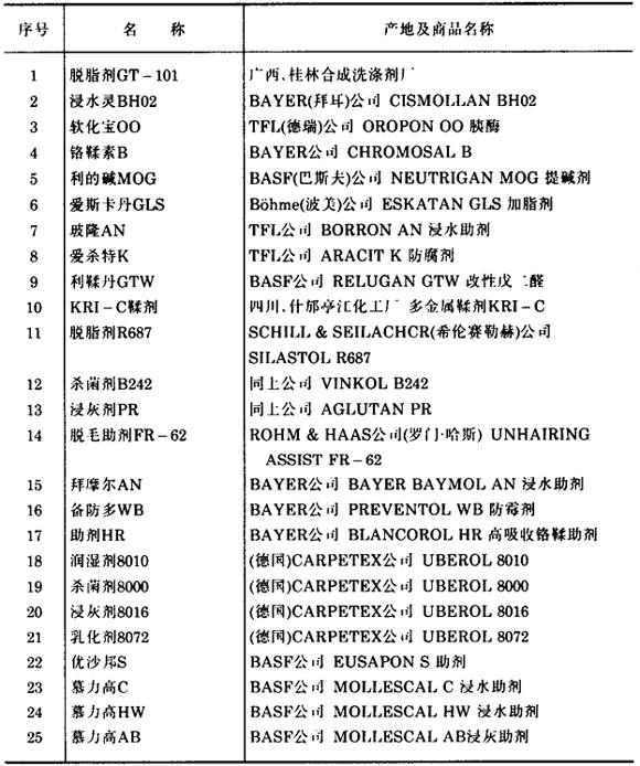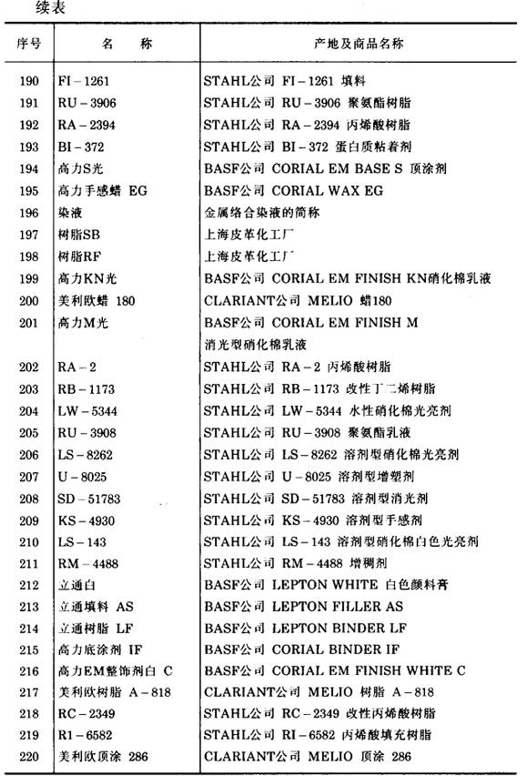 释义 工艺举例中部分化工材料索引(依工艺顺序)