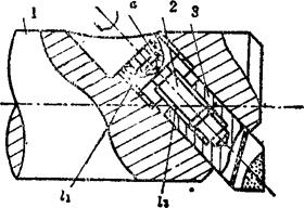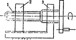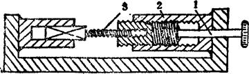 释义 | 差动螺旋机构 例5.2-111 典型差动螺旋机构 该机构由主动螺杆1、螺母滑块2和带螺孔的机架3组成。螺杆1由导程分别为l2、l3的两段螺旋制成,分别与螺母2、机架3构成螺旋副。当螺杆1转动φ角时,螺母2的移动距离S为 两螺旋旋向相同时取“-”相反时取“+”。差动螺旋机构广泛用于测微计、分度机构、调节机构及夹具等。 例5.2-112 铣刀心轴紧固机构 铣床主轴3上的螺旋和铣刀心轴2上的螺旋分别与紧固螺母1配合,两螺旋均为左螺旋,其导程不等(l3>l2)。当按图示方向转动螺母1时,则使心轴2移向主轴3的锥孔,并在孔内固紧;当反向转动1时则松开,可拔出心轴。 例5.2-113 镗刀进刀量调节机构 镗床主轴1安装镗刀3,其进刀量的调节由转动双螺杆2实现。螺杆2上端与主轴1的螺孔配合,其下端与镗刀3的螺孔配合;两段螺旋均为右螺旋,其导程分别为l1、l3。若取l1=1.25mm、l3=1mm,按图示方向旋转螺杆2时,则每转10°,镗刀沿刀杆方向的进刀量为S=O.0069mm。图中螺杆尾部的a处为调节用六角孔。 例5.2-114 气阀开关微调机构 该机构为同心同向螺距不等的差动螺旋机构。主动螺杆1的外螺旋与机架的螺孔2配合,1的内螺旋与阀门的螺杆3配合,阀门与机架构成移动副。可作为煤气罐气阀开关用,具有可缓慢开闭和微调的功能, |