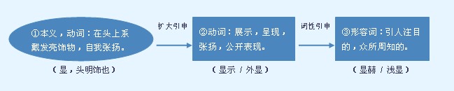释义 | ![]() ❶ 表现;露出;表现出来: ~性因子|八仙过海,各~神通|体育健儿们在运动会上大~身手。 隐 yǐn ~形眼镜|~姓埋名|~恶扬善。 遮 zhē ~丑|~人耳目|一手~天。 ❷ 有权有势有名气的: ~达|地位~赫|他是朝中~要人物。 隐 yǐn ~士|~身林泉。 ❶露在外面容易看出来。作带宾、带补谓语,宾语多为施事宾语。 傍晚,天边~出了一抹晚霞|浓雾散了,山顶上~出一座精巧的小亭子。 ❷表现、露出。可重叠。作带宾、带补谓语。 大~身手|~手艺|他又在~小聪明|明天技术表演,你可以好好~~本事|~不出来|你穿黑色衣裤,人更~瘦了|老人~出为难的样子。 明显。可受程度副词修饰。作谓语。 效果不太~|钱放在这儿太~了|屋里光线太暗,挂什么画也不大~。 【近】 〈动〉露 【反】 〈动〉隐 藏 【词语】 显达 显贵 显赫 显见 显目 显然 显荣 显微镜 显像管 显形 显学 显眼 显扬 显要 显耀 字源解说 显,金文 ![]() ![]() ![]() ![]() ![]() ![]() ![]() ![]() ![]() ![]() ![]() ![]() ![]() ![]() ![]() 附 文言版《説文解字》: 顯,頭明飾也。从頁 ![]() 附 白话版《说文解字》: 显,头上突出的装饰物。字形采用“页”作边旁, ![]() 引申线索 ![]() 【字族索引】 显 业 【同音字】 xiǎn |