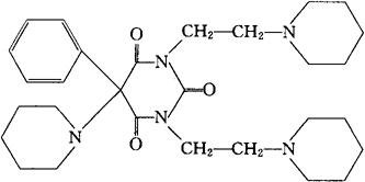 释义 | 巴维林 C29H43N5O3=509.69 CAS-1639-79-8 5-苯基-5-哌啶基-1,3-双(2′-哌啶乙基)巴比妥酸。 5-Pheny1-5-piperidino-1,3-bis(2′-piperidinoethyl)barbituric acid. 镇静、催眠药。 三哌啶比妥。 Barverine,Wu 461. |