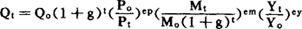 指在一定时期内,某市场面对某种商品的总需求量。 一般可用下式表示:  式中:Qt表示某市场第t期的总需求量;Q0表示某市场基期的需求量;g表示需求量年增长率;Pt表示t期某种商品平均价格;P0表示基期该商品平均价格;Mt表示第t期的市场总推销费用;M0表示基期的市场总推销费用;e表示弹性系数;Yt表示t期平均每人所得收入;Y0表示基期平均每人所得收入。 此式说明,市场总需求量除了以一定的年增长率(g)上升外,还要受到环境与销售因素的影响。从环境方面看,主要有两方面,一是第t期国民收入与基期国民收入的比率以及反映其影响深度的所得弹性系数,即 ,此比值越大,总市场需求就大,反之就小。二是基期价格同第t期价格的比率以及反映其影响深度的价格弹性系数,即 ,此比值越大,即t期的价格越是低于基期的价格,市场总需求量就越大,反之就越小;从销售因素方面看,若t期的推销费用高于基期的费用以所得增长率修正后之水准,则需求量上升,上升幅度由其推销弹性系数(em)决定。 |