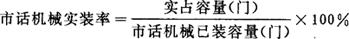 指邮电部门在一定时期内实际已占用的机械容量与机械设备总容量的比例,用于衡量市话局机械设备的利用程度。其计算公式为: