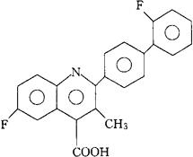 C23H15F2NO2=375.37 CAS-96187-53-0 6-氟-2-(2′-氟[1,1′-联苯]-4-基)-3-甲基-4-喹啉羧酸。 6-Fluoro-2-(2′-fluoro 1,1′-bipheny-4-yl)-3-methyl4-quinolinecarboxylic acid. 6-氟-2-(2′-氟-4-联苯基)-3-甲基-4-喹啉羧酸。 6-Fluoro-2-(2′-fluoro-4-biphenylyl)-3-methyl-4-quinolinecarboxylic acid. 抗肿瘤药。 Brequinar,Bipenquinate. INN.  |