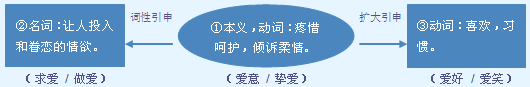 释义 | ![]() ❶动 对人或事物具有很深的感情。 【例句】我~北京。 【反义】恨;憎 【例句】爱和~是两种截然相反的情感。 ❷动 对人或事物有好感或感兴趣。 【例句】这小孩~游泳。 【同义】见“喜爱”。 ❶ (因感情深而)喜欢、热爱: ~国|才半年就~上了这份工作|小伙子一直~着那位姑娘。 恨 hèn ~之入骨|产生~意|~铁不成钢。 憎 zēng 爱~分明|面目十分可~。 厌 yàn 令人生~。 ❷ (对某事)感兴趣: 她就~说笑话|我平时~听流行音乐。 厌 yàn ~食|这类故事我早就听~了。 恶 wù 各人的好~不同。 嫌 xián 他们都~我老了|你可别~奶奶唠叨。 ❶对人或事物有很深的感情。表示心理活动,能受程度副词修饰。 a.作带宾、带补谓语。 他很~小孙子|她深深地~上了教师这一职业|~得深沉。 b.带上定语活用为名词作相应的成分。 同志之间的~给了我温暖。 ❷爱好,喜欢。常作带宾谓语,宾语常常是动词或形容词性的词语。 ~运动|她很~学习|~干净。 ❸爱惜,爱护。作谓语,必带宾语。 ~公物|大家要~集体的荣誉。 ❹容易产生某种行为或变化。作带宾谓语,宾语一般为非名词性词语。 她很~笑|他~发火|红薯在冬天~腐烂。 【近】❷❹好(hào) 【反】 ❶恨 【词语】 爱不释手 爱称 爱国主义 爱怜 爱恋 爱莫能助 爱屋及乌 爱憎分明 字源解说 爱,金文 ![]() ![]() ![]() ![]() ![]() ![]() ![]() ![]() ![]() ![]() ![]() ![]() ![]() ![]() ![]() ![]() ![]() ![]() ![]() ![]() 附 文言版《説文解字》:愛,行皃。从夊, ![]() 附 白话版《说文解字》:爱,行走的样子。字形采用“心”作边旁,采用“ ![]() 引申线索 ![]() 【字族索引】 友 爱 【同音字】 ài |