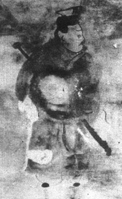 释义 | 带剑人物图 【作品赏析】: 这一带剑人物是《护乌桓校尉幕府谷仓》图中的一个局部,大概属管谷仓的官吏。 他身著红袍,腰挂长剑,在不慌不忙的巡行中认真地左查右看。 在表现技法上,和林格尔壁画与其它汉墓的壁画有不尽相同的地方。如这幅人物,不是以线勾画,而是以色为主表现形体。 整个人物的身体就是一块红色,只在头部、衣领、足部用了简略的几根线。用色表现体积,汉画中并不多见。这幅作品,不仅用色表现,而且体态结构的造型较为准确,不多的线却用得很讲究,如人物头部仅仅几根线,就形象地勾画出一个血气颇盛的中年壮汉和带有几分凌人之气的小军吏。 这幅图用线的洗练、准确、简洁,称得上是“惜墨如金”。色、线相互辉映,构成了一幅成功的、完整的人物肖像画。 。 汉 内蒙古和林格尔汉墓壁画 |