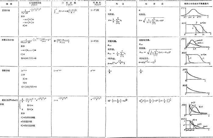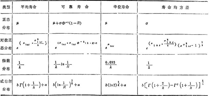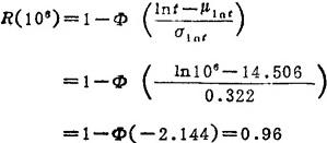 释义 | 常用分布函数 见表3.3-2、3、4。 表3.3-2 离散型随机变量概率分布 注: ❷ Γ( )为Γ函数, ❸ 求失效率λ(t),可按λ(t)=f(t)/R(t)。 表3.3-4 常用分布的寿命公式 注:表中各符号含义见表3.3-3。 例3.3-1 某车间使用5台设备,已知设备在800小时内的失效概率为0.05,试求至少有3台在800小时内能正常工作的概率。 解:设各设备的失效事件互为独立,按二项分布,且设X为不能正常工作的设备数,由表3.3-2中公式 = 例3.3-2 已知某飞机零件的寿命遵从威布尔分布,并已知形状参数k=2,位置参数a=0,尺度参数b=200h,试求当t=150h时的可靠度R(t),以及平均寿命和可靠度R=95%的可靠寿命。 解:由表3.3-3和3.3-4所列公式 可靠度:R(t)= 平均寿命: R=0.95的可靠寿命:t0.95= 例3.3-3 已知齿轮寿命遵从对数正态分布,对数寿命的均值和均方差μlnt=14.506,σlnt=0.322,求平均寿命、寿命均方差、中位寿命、R=0.99的可靠寿命以及可靠度R(106)。 解:由表3.3-4所列公式 平均寿命: 寿命均方差: =0.69×106 中位寿命:t0.5=eμlnt=e14.506=2.0×106 R=0.99的可靠寿命:l0.59=e[μlnt+σlntΦ-1(1-R)] =e[14.506+0.322Φ-1(1-0.99)] =e[14.506+0.322(-2.326)]=0.94×106 可靠度: |