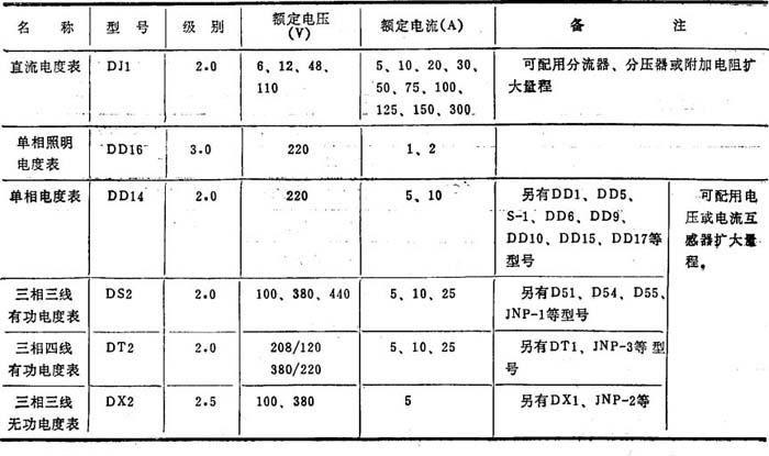 释义 | 常用直读指示仪表 直读指示仪表的作用原理及特点见表8.1-17。目前,多数常用的为直读指示仪表,如电流表、电压表和万用表等。 表8.1-17 直读指示仪表作用原理及特点 三相功率因数表 三相功率因数表是用于测量对称三相电路的功率因数。常用三相功率因数表的型号及规格见表8.1-24。 表8.1-24 常用三相功率因数表的型号及规格 瓦特时表 俗称电度表,用于电能的测量,其部分产品的型号规格见表8.1-25。 表8.1-25 部分电度表的型号及规格 |