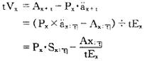 Tx——lx的人口于x岁以后生存的年数总和 lx——lx的人口自x岁到x+1岁为止生存的年数。 Ax——终身保险给付金的精算现值,也即终身寿险的趸缴纯保费。