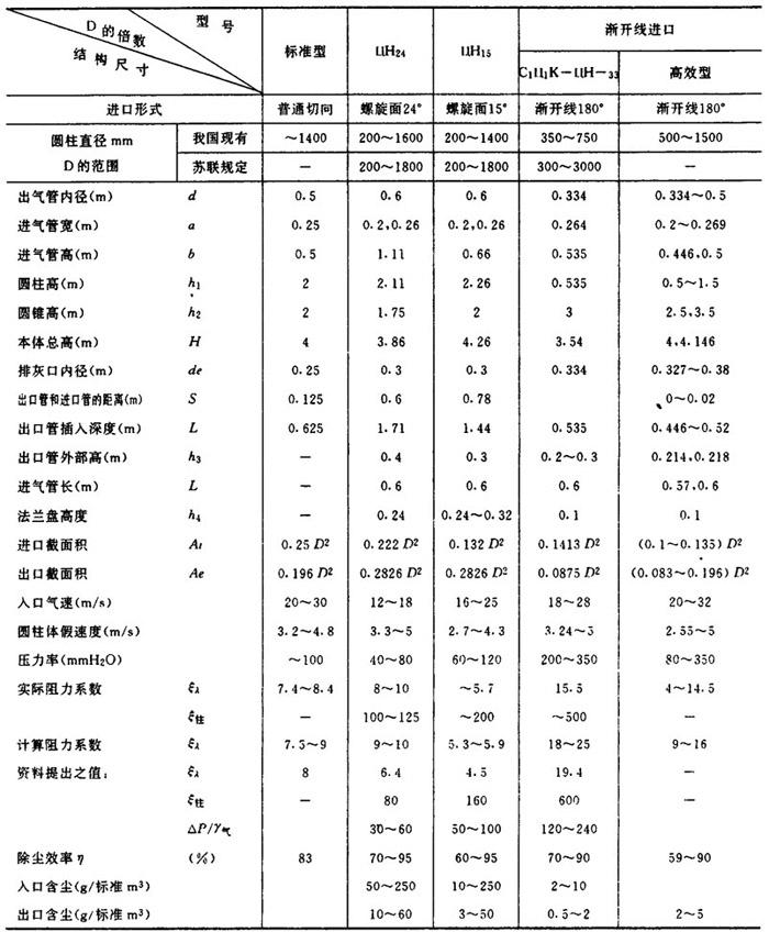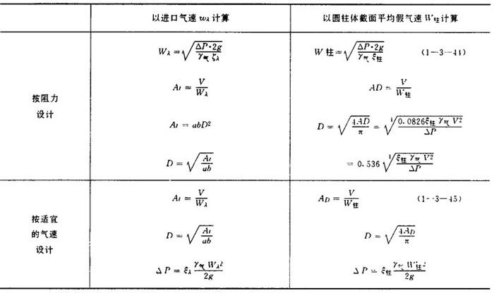 释义 | 干法除尘计算 1.除尘室矿尘的沉降速度V 【说明】当气流处于层流状态时,矿尘的沉降速度可用Stokes定律计算。 【公式】 式中 V——沉降速度(m/s) γ——矿尘的容重(kg/m3) γ气——炉气的容重(kg/m3) d——矿尘颗粒的直径(m) μ——炉气的粘度([(kg·s)/m2]) 【例】当炉气的温度为400℃,炉气的粘度为0.0315cP[= 2.旋风除尘器的计算 【说明】旋风除尘器主要部分的尺寸用圆柱体内径的倍数来表示,设计时主要是求出圆柱体直径,计算顺序和公式见表1-3-15。 【公式】见表1-3-15。 表1-3-15 旋风除尘器计算公式 以上式中符号含义及单位如下: V——被净化气体的体积流量(m3/s) γ气——炉气容重(kg/m3) △P——除尘器的阻力(mmH2()) ξλ——以进口气速计的流体阻力系数 ξ柱——以圆柱体截面平均假气速计的流体阻力系数 W柱——圆柱体截面平均假气速(m/s) Wλ——进口气速(m/s) D——除尘器圆柱体内径(m) α——入口宽为圆柱体内径的倍数 b——入口高为圆柱体内径的倍数 g——重力加速度(9.81m/s2) At——进气口截面积(m2) 【附表】不同型号的旋风除尘器工艺参数见表1-3-16 表1-3-16 旋风除尘器工艺参数 |