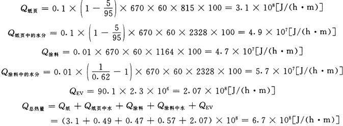 释义 | 干燥设备 1.干燥的目的 涂布纸干燥的目的可概述为两个方面: (1)除去涂料中多余的水分,使涂层产生固化并形成一层功能性的表面。 (2)使涂料中的化学组分产生应有的抗水性能和成膜性能,为使涂布纸进入压光机或最终加工工序,如印刷适性、包装外观等具有适当的条件。由于涂布后纸或纸板涂层中含有30%~45%的水分,要除去这些水分的途径只有一条,即干燥使水蒸发。 2.干燥的机理 涂布纸的干燥过程是能量传递和物质传递的复合过程。能量传递指的是热能从高温处向低温处的流动,通常有三种不同的方法,即传质、对流和辐射。传质指的是物质或分子从高浓处向低浓处的流动,涂布纸干燥的传质过程包括液态水从湿纸幅中蒸发出来和把蒸发出来的水蒸气移送出去。传热和传质决定了干燥过程进行的速度,即干燥速率。涂布纸的干燥速率可分成三个阶段如图4-65所示。预热阶段,为加速干燥速率曲线部分,输入的能量主要是为了加热原纸、涂料和附带的水分到明显蒸发的温度点。通常发生明显蒸发时的表面湿球温度是72℃。恒定蒸发阶段,为恒定干燥速率曲线部分,它是干燥的主要阶段。输入的热能主要是使加热的原纸,涂料和附带的水分蒸发。由于水分的蒸发和冷却作用,纸页的温度保持恒定。这个温度大小,取决于不同的纸种。通常进入干燥系统的涂布纸水分越低,由于水分蒸发时吸收的汽化潜热相应减小而使干燥时纸页的温度越高,一般范围是80~150℃。降速阶段,是降速干燥速率曲线部分,这时的涂布纸已达到一定的干度,进一步除去水分的阻力增大,输入的能量除进一步提高纸的干度外,同时也使纸页的温度继续升高,这时必须控制合适的能量输入,因为纸页温度的过分升高会危及纸的产品质量。 3.干燥设备 涂布机的干燥器不仅仅是一个加热装置,虽然加热是它的主要功能。除此之外,它还必须能把产生的水蒸气排出干燥器。实现第二个功能与第一个功能是同等重要的,因为干燥本身就是一个传热和传质的过程。涂布纸干燥时,湿涂层的表面是一层空气、其它气体、水蒸气层,这一层既是热能传递进入纸内的障碍,也是产生的水蒸气逸散的障碍。干燥器设计的很大部分考虑就是针对这个问题,即穿透这层障碍,并把产生的水蒸气带出,以提高干燥效率。 1)烘缸干燥器 烘缸干燥是以蒸汽传导方式传热,空气对流方式传质的过程。烘缸又称接触式干燥器或传导式干燥器,图4-66所示普通式烘缸干燥器,图4-67为热风气罩式杨克烘缸干燥器。 烘缸干燥器的特点如下: (1)干燥过程中,支撑纸幅,减少松弛性拉力,并降低张力。 (2)纸页在平整的烘缸表面干燥,降低了纸幅的应力折皱和卷曲现象。 (3)接触式干燥是一种非常有效的热传导干燥方式。 (4)由蒸汽的潜热提供干燥能量是一条经济有效的途径。 (5)容易引纸和断纸处理。 标准型普通烘缸的直径一般为1500mm或1800mm,限定承受压力200~800kPa。烘缸的蒸发速率在2.5~20kg水/(m2·h)范围。在涂布纸干燥中,当涂层表面干度已达到不粘缸时,可以使用烘缸进行干燥,常用的蒸发速率为6~8.5kg水/(m2·h),其总蒸发能力按烘缸的周长来计算。一直径为1500mm的烘缸,蒸汽压力为135~240kPa时,其蒸发能力可达28~40kg水/(m宽·h)。 杨克烘缸的直径一般为3500~6000mm,它除了具有普通烘缸传导加热的功能外,还具有利用高速热风气罩对流传热的特点。一般来讲,气流速度的划分为:低速0~25m/s;中速25~50m/s,高速50~76m/s;超高速76m/s以上。同样温度的划分为:低温90~160℃,高温160℃以上。高速热风气罩的气流速度为50~60m/s,温度为150~315℃,干燥速率为35~95kg水/(m2·h)。热风气罩的剖面结构见图4-68。热风气罩的喷嘴之间距离为19~ 25mm。喷嘴与纸页之间的间隙为3~12mm,喷嘴开度0.64mm。 图4-69为烘缸干燥器的排列示意图。为了防止涂布后表面的湿涂料粘缸,一般要求第1、2烘缸表面具有防粘涂层或者采用非接触型干燥器,如红外干燥或热风气垫式干燥。作为常规来讲,含有磨木浆的涂布纸干燥,采用20%~25%的非接触型干燥就可以了,对于不含磨木浆的涂布纸干燥,需要采用40%~45%的非接触型干燥。 烘缸干燥蒸发水量的计算 W水=W涂×V×60×(R1—R2) 式中 W水——单位时间内每米纸幅宽度所蒸发的水量,kg水/(h·m) W涂——涂布量,kg/m2 V——车速,m/min R1——进干燥器时涂料中的水与固体的比例 R——出干燥器时涂料中的水与固体的比例 干燥烘缸数量的计算: (2)拱式热风干燥器,如图4-71所示。 (3)气垫式热风干燥器,如图4-72所示。 气垫式干燥器是一种不接触型干燥设备,它可以单侧布置,也可以双侧布置。从各种干燥性能的测定和归纳来看,采用双侧布置比单侧布置的气垫式干燥器对涂布纸干燥的质量要好,同时还可增加产量。双侧布置的气垫干燥器有两种形式:对应排列和交错排列,如图4-73所示。气垫干燥喷嘴的形式有气浮式和气翼式两种。 气浮式如图4-74所示。喷嘴是对称交错布置的,干燥空气从喷嘴的两侧喷出,由于“附壁效应”,横向气流给纸页摩擦作用,以达到最佳的热和质的传递,同时支撑纸幅在某一位置。这种特殊设计的喷嘴几何形状,使纸幅在最佳的运行性能下达到最大的热交换,纸幅以正弦波形式穿过气垫箱,这样就能防止皱褶和卷曲,获得最佳的运行稳定性。 气翼式如图4-75所示。干燥空气从喷嘴一侧喷出后随纸一起运行,由于“附壁效应”,使纸幅定位在离喷嘴一定