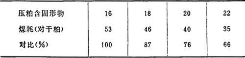 释义 | 干燥过程的煤耗 1.耗煤量的计算 设:压粕固形物=16% 干粕固形物=84% 每吨煤蒸发水分=8吨 计算:按压粕及干粕中固形物相等,得出下式(取压粕重为100公斤): 干燥过程蒸发的水分为: 100-19=81公斤 耗煤量为: 或 10.1× 上面系理论上的计算,生产中尚须考虑到热损失、操作不均衡性等,因此煤耗量达60%(对干粕)或更高。 2.节约煤耗 目前一个日加工一千吨甜菜糖厂的制糖耗煤约为80~100吨。如废粕全部干燥耗煤量约为36吨,约占制糖及干粕生产全部用煤量的1/3。 节约煤耗的途径主要有: (1)降低压粕的含水,上述计算推导得表7-12。 表7-12 降低压粕含水以节约煤耗 从表7-12可看出,理论上每减少压粕中含水1%,可节约煤耗约3%(实际生产中将达4%或更高)。将压粕固形物自16%提至22%,可节约用煤1/3。 (2)加强燃烧炉及干燥机的操作,掌握均衡的进料速度,以及炉气温度、通风量等的有机配合是降低燃煤的重要保障。 (3)干燥机废气的再利用:回头废气再利用于燃烧炉,可节约燃料的消耗约5~8%。 |