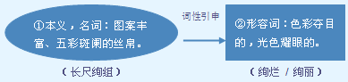 字源解说 旬,既是声旁也是形旁,是“眴”的省略,表示眩目。绚,篆文 = (糸,丝绸)+ (旬,“眴”,眩目),表示令人目眩的五彩丝绸。造字本义:图案丰富、五彩斑阑的丝帛。隶书 将篆文的“糸” 写成 。 附 文言版《説文解字》:絢,《詩》云:“素以爲絢兮。”从糸,旬聲。 附 白话版《说文解字》:绚,《诗经》上有诗句唱道:“白纸纯洁,描绘缤纷世界”。字形采用“糸”作边旁,采用“旬”作声旁。 引申线索