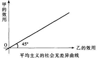 释义 | 平均主义 平均主义认为,社会福利与社会各成员的效用水平没有任何关系,它只取决于社会各成员效用水平的相对关系。 一个两人社会中,甲与乙的效用水平相等,是平均主义的理想状态,如果甲增加若干效用,而乙增加的效用小于或大于这一数量,就会出现两人的不均等,尽管两人的福利水平提高了,也会因此产生贫富差距,它背离了平均主义的理想状态,因而社会福利水平下降了。平均主义的社会无差异曲线是从图中原点出发的射线,这条线上的所有点对甲乙两人的效用水平都具有相同的比例关系,因而在社会看来是无差异的,表示平均主义最高社会福利水平的无差异曲线是45。线,该线上的任何一点都表示甲乙两人具有相同的效用水平。 |