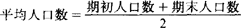 一定时期内,各个时点的人口的平均数。 它代表计算期内任一时点的人口数,反映计算期(如月、季、年或若干年)内人口发展的平均规模。 平均人口数是计算出生率、死亡率、自然增长率和平均每人国民收入、平均每人产值和产量等指标的基础数据。 实际工作中计算平均人口数,一般是根据已掌握的时点数字计算平均人口数的近似值。 根据掌握的资料和计算的要求不同,可采用以下几种不同方法计算平均人口数: 1.在只掌握期初、期末人口数时,可按简单算术平均数方法计算。  即: 在实际工作中,也可用期中人口数代替期内平均人口数。 2.在已知某时期内若干时点的人口数时,可用序时平均数计算平均人口数。  式中: 为平均人口数; P1P2P3…Pn为各时点的人口数; n为时间间隔数。 上式为各时点间隔时间相等的计算方法,如各时点间隔时间不等,需用间隔时间加权计算。 即:  式中f1f2…fn为间隔时间权数。 3.在计算时间较长,该时期人口数又是按一定比例递增(减)时,可用几何级数计算。 (1)将各年人口数相乘、然后以年数为次数进行开方。  (2)用期末人口数减期初人口数作分子,用期末人口数的自然对数与期初人口数的自然对数之差作分母,相除后得平均人口数。 即:  换成常用对数式: