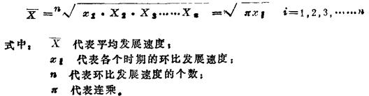 为若干时期环比发展速度的几何平均数。是将较长时期各个环比发展速度的差异抽象化,反映现象在一定时期内发展变化的一般程度的动态分析指标,也叫平均发展率。通常用百分数表示。由于总的发展速度,不等于各环比发展速度的代数和,而等于它们的连乘积,因此平均发展速度的计算公式为: