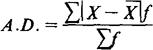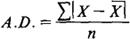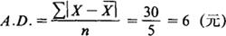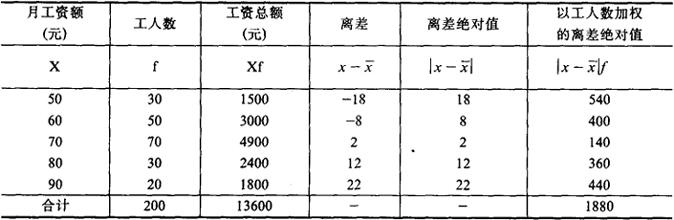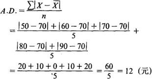 各个变量值对其算术平均数的平均离差。 由于离差总和恒等于零 ,所以计算平均差时,采用离差的绝对值 。平均差越大,说明各标志值与平均数的离差越大;反之,平均差越小,说明各标志值的变动度越小,平均数的代表性越强。 计算平均差的公式,分为简单平均式和加权平均式两种。 1.简单平均式。  式中,A、D、代表平均差(其余符号的意义见平均指标条)。 例如,有两组工人,他们的月工资额如下: 甲组:50,60,70,80,90 乙组:60,65,70,75,80  甲组的平均差是:  用同样的方法得乙组的平均差为:  这就是说,在甲乙两组工人平均工资相等(均为70元)的情况下,甲组的平均差(12元)大于乙组平均差(6元)。 由此表明,甲组平均数的代表性不如乙组。 2.加权平均式。 在资料经过分组,形成分配数列时,应采取加权平均式。其公式为:  假设某企业200个职工的工资资料如下:   计算表明,该企业职工的月平均工资额为68元,与各个人的月工资额平均相差9.4元。 |