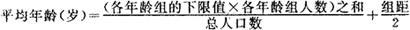 释义 | 平均年龄 某一时点属于统计对象的所有个人年龄的平均数。计算公式是: 统计对象如果是初婚人口、初育人口、死亡人口,参照上述计算公式,可得到平均初婚年龄(男性或女性)、平均初育年龄(一般指妇女)、平均死亡年龄(全部死亡人口或分性别人口)等 |