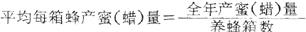 通常指一年内每箱蜂平均产蜜(蜡)量。反映养蜂业的工作质量和生产水平。计算公式为: