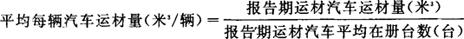 指报告期运材汽车运材量与报告期运材汽车平均在册台数之比。它是反映每辆汽车生产效率的指标。其计算公式为: