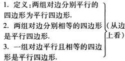 释义 | 平行四边形的判别条件 4.两条对角线互相平分的四边形是平行四边形(从对角线上看). 5.两组对角分别相等的四边形是平行四边形(从角上看). 注意 平行且相等用符号“ 例1 如图,在 答 4. [解析] 例2 如图, 答 3个. [解析] 例3 A、B、C、D在同一平面内,从(1)AB∥CD、(2)AB=CD、(3)BC∥AD、(4)BC=AD这四个条件中任选两个,能使四边形ABCD是平行四边形的有( ). A.3种 B.4种 C.5种 D.6种 答 B. [解析] (1)与(2)、(3)与(4)、(1)与(3)、(2)与(4). |