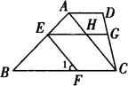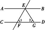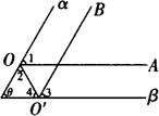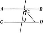 释义 | 平行线的性质 两条平行线被第三条直线所截,同位角相等,内错角相等,同旁内角互补,简记为: 两直线平行,同位角相等; 两直线平行,内错角相等; 两直线平行,同旁内角互补. 注意 1.两直线平行的判定与平行线的性质,是条件相反的问题. 两直线平行的判定是说已知同位角相等(或内错角相等或同旁内角互补),就可以判定两直线必定具有平行的位置关系.而平行线的性质是已知两直线平行时,同位角、内错角、同旁内角所具有的相等或互补的数量关系. 2.两直线平行的判定是由角的数量关系推得直线的位置关系而平行线的性质则是由直线的位置关系推得角的数量关系. 例1 如图,直线a,b被直线c所截,且a∥b,如果∠1=60°,那么∠2=__. 答 120°. [解析] ∵直线a、b被直线c所截,且a∥b, ∴∠3=∠1. ∵∠1=60°. ∴∠3=60°. ∴∠2=180°-∠3=180°-60°=120°. 例2 如图,两平面镜α,β的夹角为θ,入射光线AO平行于β入射到α上,经两次反射后的反射光线O′B平行于α,则角θ等于__. 答 60. [解析] ∵入射角等于反射角, ∴∠1=∠2,∠3=∠4. ∵AO∥β, ∴∠1=θ. ∵O′B∥α, ∴∠3=θ. ∴∠2=∠4=θ. ∵∠2+∠4+θ=180°, ∴θ=60°. 例3 如图,已知AB∥CD,∠2=140°,则∠1=__. 答 40°. [解析] ∠1=180°-140°=40°. 例4 如图,AD∥EG∥BC,AC∥EF,则图中与∠1相等的角(不含∠1)有__个;若∠1=50°,则∠AHG=__ 答 5,130°. [解析] ∠ACF=∠AHE=∠CHG=∠CAD=∠FEG=∠1,∠AHG=180°-50°=130°. 例5 如图,已知AB∥CD,直线EF分别交AB、CD于点E、F,EG平分∠BEF,若∠1=50°,则∠2的度数为( ). A.50° B.60° C.65° D.70° 答 C. [解析] ∠2=∠BEG=1/2(180°-∠1)=65°. 例6 如图,AB∥CD,AC⊥BC,图中与∠CAB互余的角有( ). A.1个 B.2个 C.3个 D.4个 答 C. [解析] ∵AC⊥BC, ∴∠ACB=90°. ∴∠CBA=90°-∠CAB. ∵AB∥CD, ∴∠DCB=∠CBA. 图中还有个角是∠CBA的对顶角, ∴图中共有3个角与∠CAB互余. 例7 一学员在广场上练习驾驶汽车,两次拐弯后,行驶的方向与原来的方向相同,这两次拐弯角度可能是( ). A.第一次向左拐30°,第二次向右拐30° B.第一次向右拐50°,第二次向左拐130° C.第一次向右拐50°,第二次向右拐130° D.第一次向左拐50°,第二次向左拐130° 答 A. [解析] 利用同位角相等,两直线平行. 例8 如图所示,已知AB∥CD,∠1=∠2,若∠1=50°,则∠3=__度 答 80°. [解析] ∵∠1=∠2=50°, ∴∠1+∠2=100°. 又∵AB∥CD, ∴∠1+∠2+∠3=180°. ∴∠3=180°-100°=80°. |
